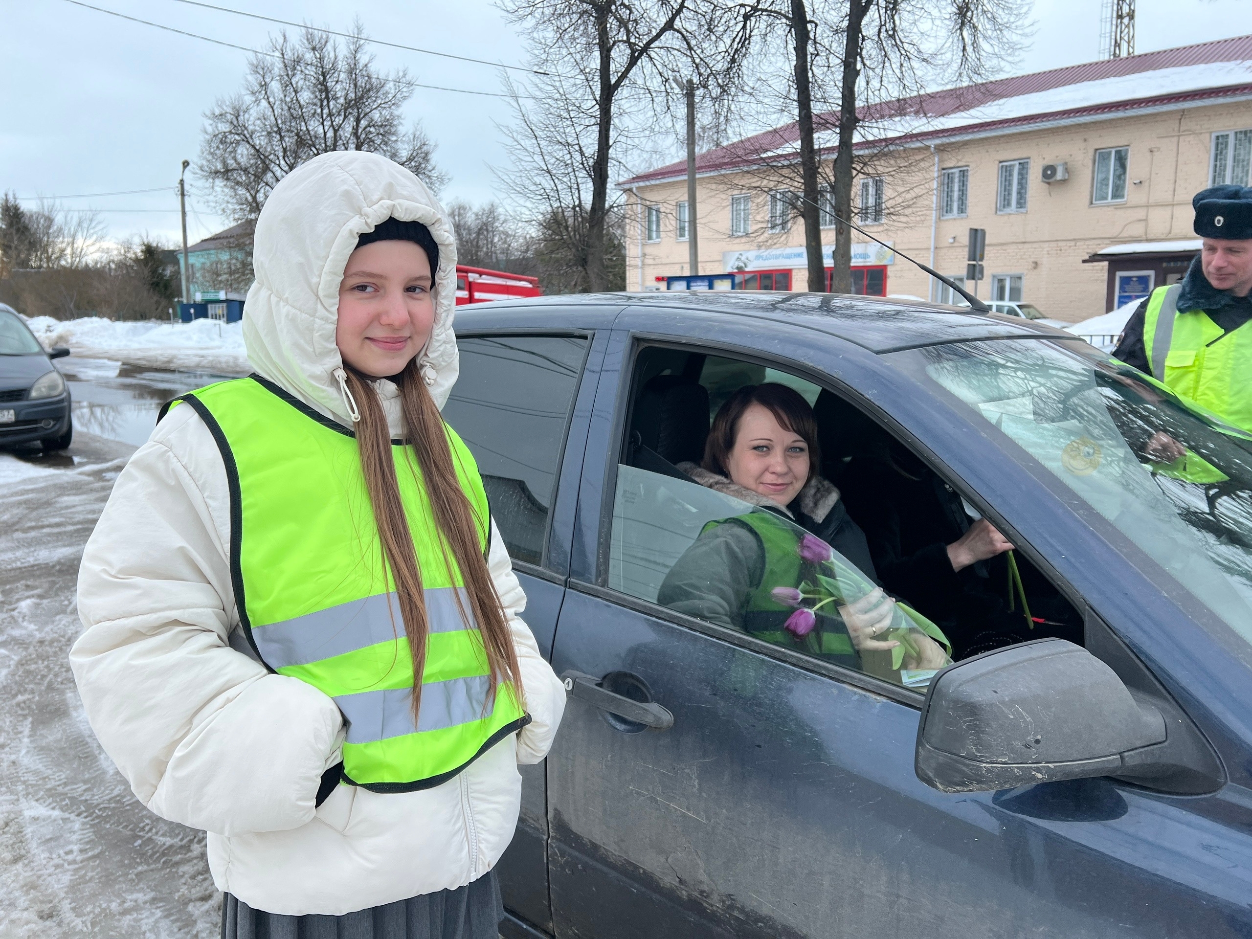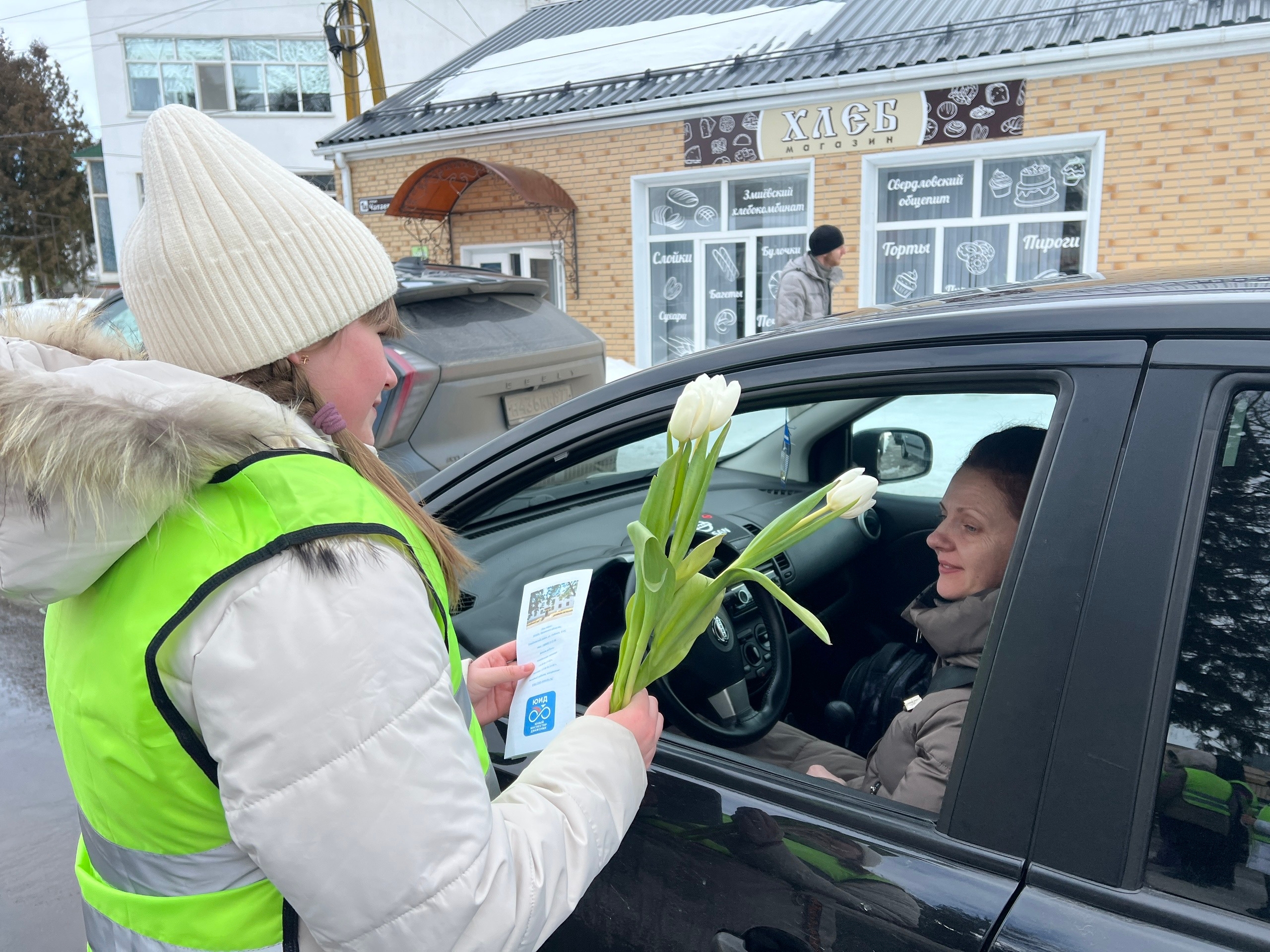 В честь Международного женского дня мы, отряд ЮИД «Свердловского центра детского творчества», под руководством Пашковой К. В. вместе с сотрудником Госавтоинспекции, майором полиции Дроздовым С. Г., провели акцию «С 8 Марта поздравляем - ПДД не нарушаем!»