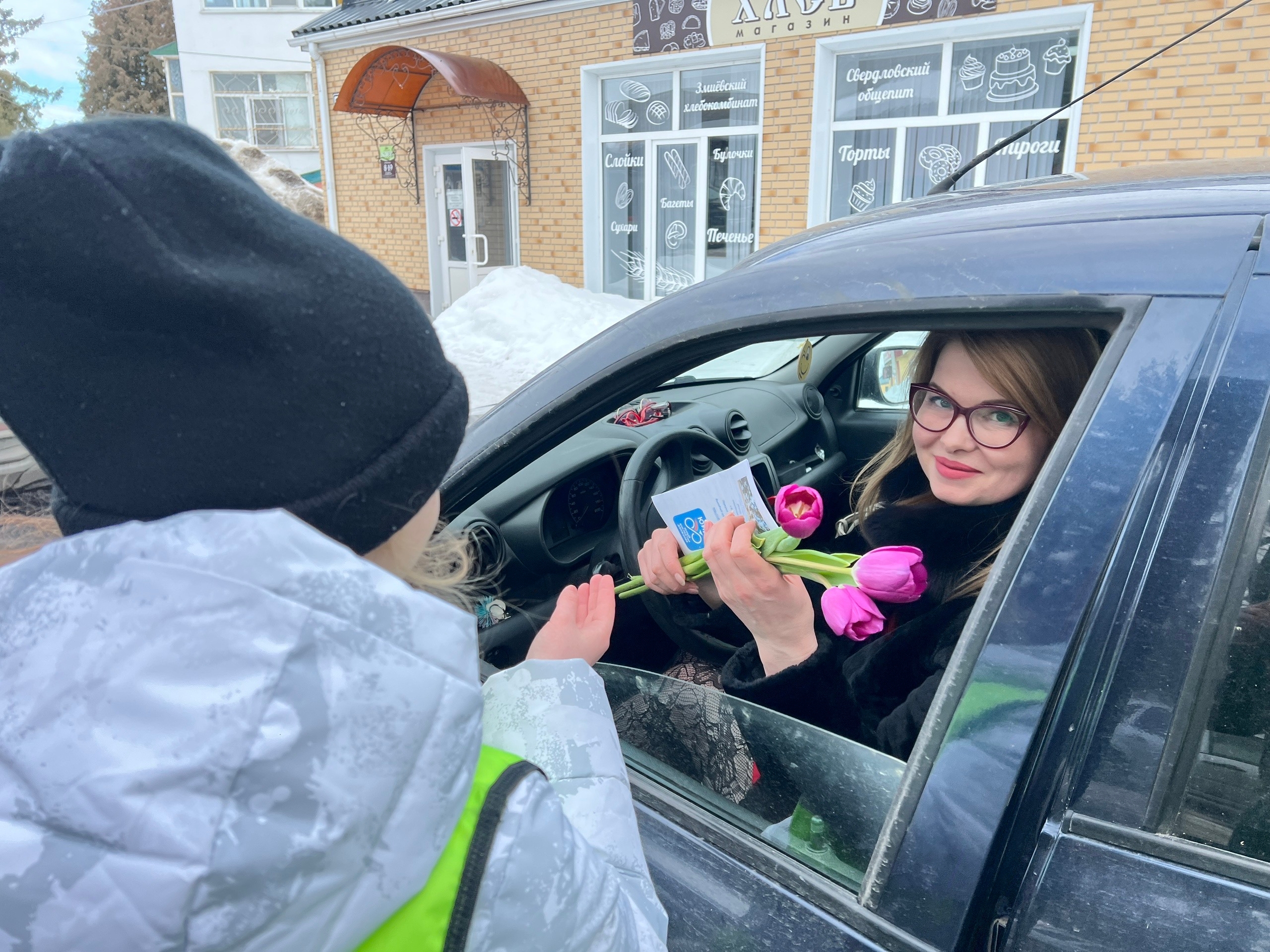 Эта позитивная акция подарила улыбки, приятные пожелания и прекрасное настроение женщинам-водителям, пассажирам и пешеходам.